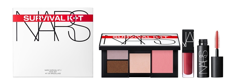 NARS SURVIVAL KIT1  เมคอัพที่ขาดไม่ได้สำหรับฤดูกาล ประกอบไปด้วย อายแชโดว์สี  Rich Neutral Naïad and Kalahari II, ปัดแก้มสี Off Limits and Mata Hari, ลิปกลอสสี Party Girl, และ Audacious Mascara สี Black Moon