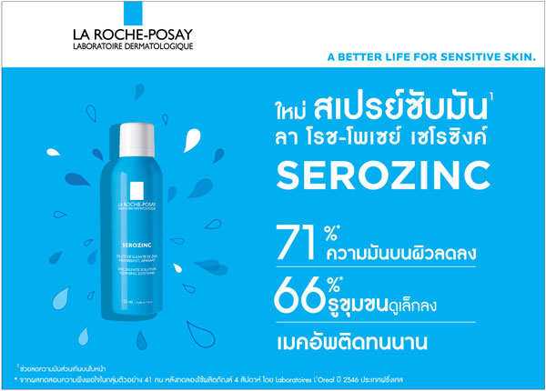 ลา โรช-โพเซย์ เซโรซิงค์ สเปรย์ซับความมันบนส่วนเกินบนใบหน้า ที่มีส่วนผสมจากซิงค์ช่วยลดความมันบนส่วนเกินบนใบหน้า ทำให้ความมันวาวบนผิวลดลง รูขุมขนดูเล็กลง และช่วยทำให้เมคอัพติดทนนานมากยิ่งขึ้น สามารถใช้ได้แม้ผู้มีผิวบอบบางระคายเคืองง่าย