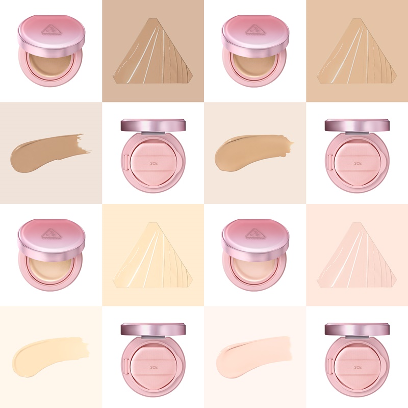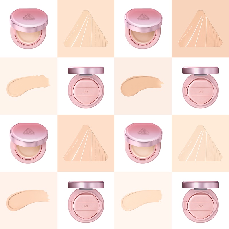 อวดผิว PEARLfect เปล่งประกายดุจไข่มุก ไม่ดรอป ไม่เฟดตลอดวัน ด้วย Fitting Mesh Cover Cushion ใหม่ล่าสุดจาก 3CE คุชชั่นรองพื้นล้ำสมัย ผสานเม็ดสี 3CE Super Pearl สร้างเอฟเฟกต์โทนอัพผิวให้ดูกระจ่างใสและสมบูรณ์แบบในทุกสภาพแสง พร้อมส่วนผสมจากสกินแคร์เข้มข้นถึง 76% ทั้ง Hyaluronic Acid และ Panthenol เติมความชุ่มชื้น ให้ผิวฟินิชแบบซอฟต์แมทที่เปล่งปลั่งสุขภาพดี พร้อมปกป้องผิวด้วย SPF 40 PA+++