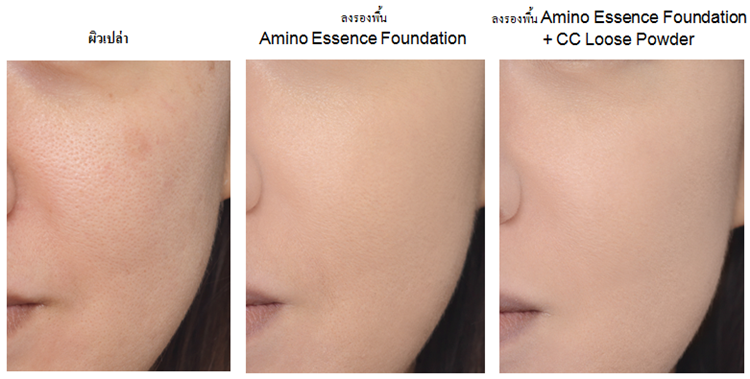 Tips: ใช้รองพื้น Amino Essence Foundation ควบคู่กับ CC Loose Powder เพื่อผิวที่เรียบเนียนและกระจ่างใสถึงขีดสุด