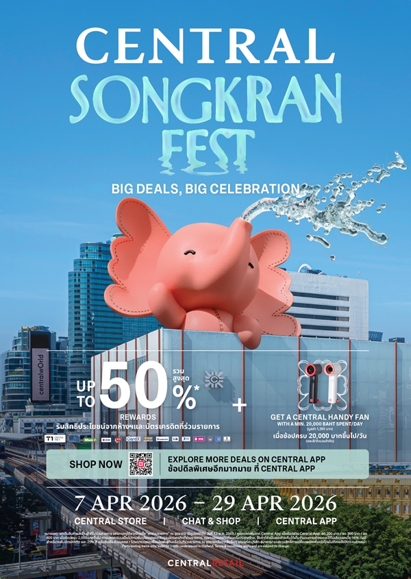 ร่วมต้อนรับเทศกาลสงกรานต์ปี 2569 อย่างยิ่งใหญ่ กับแคมเปญ “CENTRAL SONGKRAN FEST” ระหว่างวันที่ 7–29 เมษายน 2569 ที่ห้างเซ็นทรัลชิดลม ในเครือเซ็นทรัล รีเทล และงาน “A SENSE OF THAI 2026: ROOTED IN HERITAGE” ที่ศูนย์การค้าเซ็นทรัล เอ็มบาสซี ร่วมกันถ่ายทอดบรรยากาศแห่งการเฉลิมฉลองที่ผสานเสน่ห์ ความเป็นไทยเข้ากับไลฟ์สไตล์ร่วมสมัยอย่างลงตัว ชวนสัมผัสประสบการณ์ความสุข ผ่านกิจกรรมสุดพิเศษตั้งแต่การช้อปปิ้ง อิ่มอร่อยกับเมนูคลายร้อน และร่วมสนุกกับกิจกรรมของเทศกาลปีใหม่ไทย พร้อมร่วมสนุกในเดือนเดียวกันกับเทศกาลอีสเตอร์ที่งาน “CENTRAL EASTER DAY” ระหว่างวันที่ 4 – 6 เมษายน 2569 มอบประสบการณ์ความสนุกให้กับครอบครัวกับกิจกรรมมากมาย