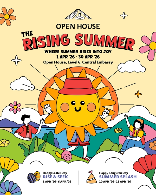 สำหรับศูนย์การค้าเซ็นทรัล เอ็มบาสซี ปักหมุดที่ Open House ชั้น 6 เปิดพื้นที่เป็นดินแดนแห่งความสนุก และแรงบันดาลใจในงาน “THE RISING SUMMER – WHERE SUMMER RISES INTO JOY” พิเศษสุดกับคาแรคเตอร์ "น้องซันซัน" (Sun Sun) ตัวแทนความสดใส ชวนทุกคนมารับพลังบวกและสร้างความทรงจำดีๆ ร่วมกัน พบกิจกรรมสร้างรอยยิ้มอย่าง Kites on the Rise ปล่อยจินตนาการไปกับเวิร์กช็อปประดิษฐ์ว่าวรูปทรงแมลงหลากสีสัน และ The Rising Music Stage เติมเต็มความละมุน ด้วยเสียงเพลงจากวงดนตรีสดสุดชิลล์ ทุกวันเสาร์-อาทิตย์ นอกจากนี้ยังพบกับกิจกรรมไฮไลต์ อื่นๆ ไม่ว่าจะเป็น Rise & Seek ผจญภัยตามล่าไข่ทองคำ (วันที่ 1 – 6 เม.ย. 2569) Golden Egg Hunt สวมบทนักสืบ ร่วมภารกิจตามหา “ไข่ทองคำ” ที่ซ่อนอยู่ ตามมุมต่างๆ ทั่ว Open House โดยมีคำใบ้จากน้องซันซัน Creative Workshop ปลุกวิญญาณศิลปินในตัวคุณกับเวิร์กช็อป Rise & Shine Egg Painting และ Harvest Bloom Basket ออกแบบตะกร้าเก็บขนมสุดน่ารัก
