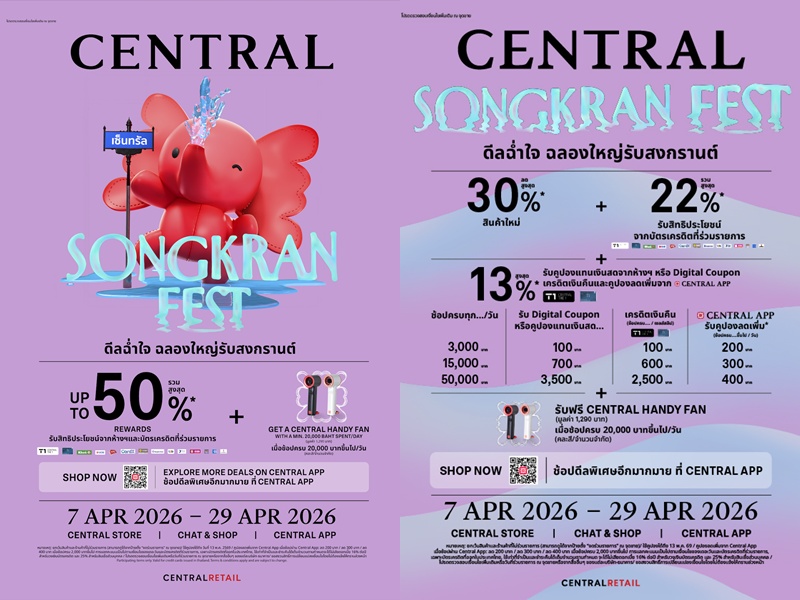 "CENTRAL SONGKRAN FEST" ช้อปดีลฉ่ำใจกับโปรโมชันสุดคุ้ม และสิทธิพิเศษสุดเอ็กซ์คลูซีฟ